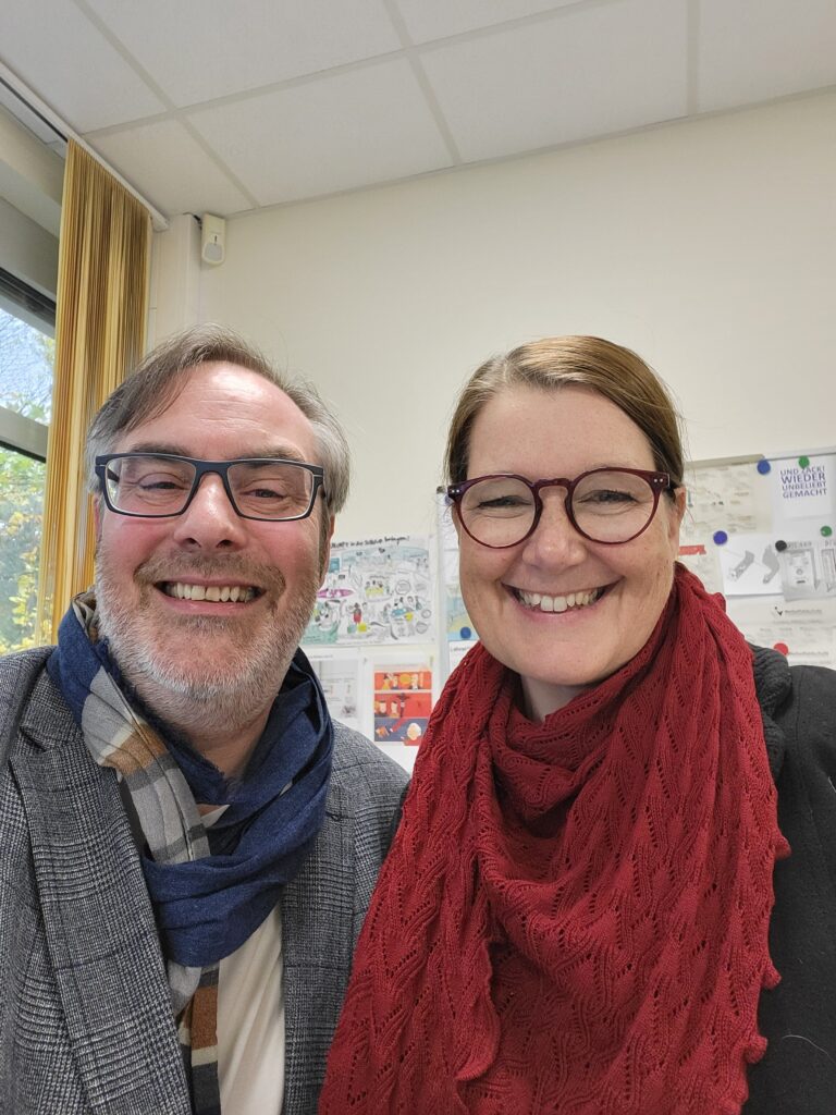 Im Oktober war es dann etwas ruhiger, in den arbeitsreichen Herbstferien gab es wieder Staatsexamina an der Uni und danach in der Schule. Besonders schön war der Besuch von Susanne Posselt am 28. Oktober, der ich unsere schöne Weibelfeldschule zeigen durfte und mit der immer ein interessanter Austausch stattfindet.